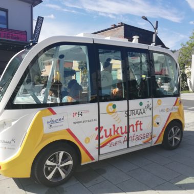 Inhalte: Entwicklung der Mobilität, Autonomes Fahren (Shuttle), Autonomes Flug- und Wassertaxi - Testfahrt mit dem autonomen Shuttle (eine Runde in Pörtschach ca. 20 Min)