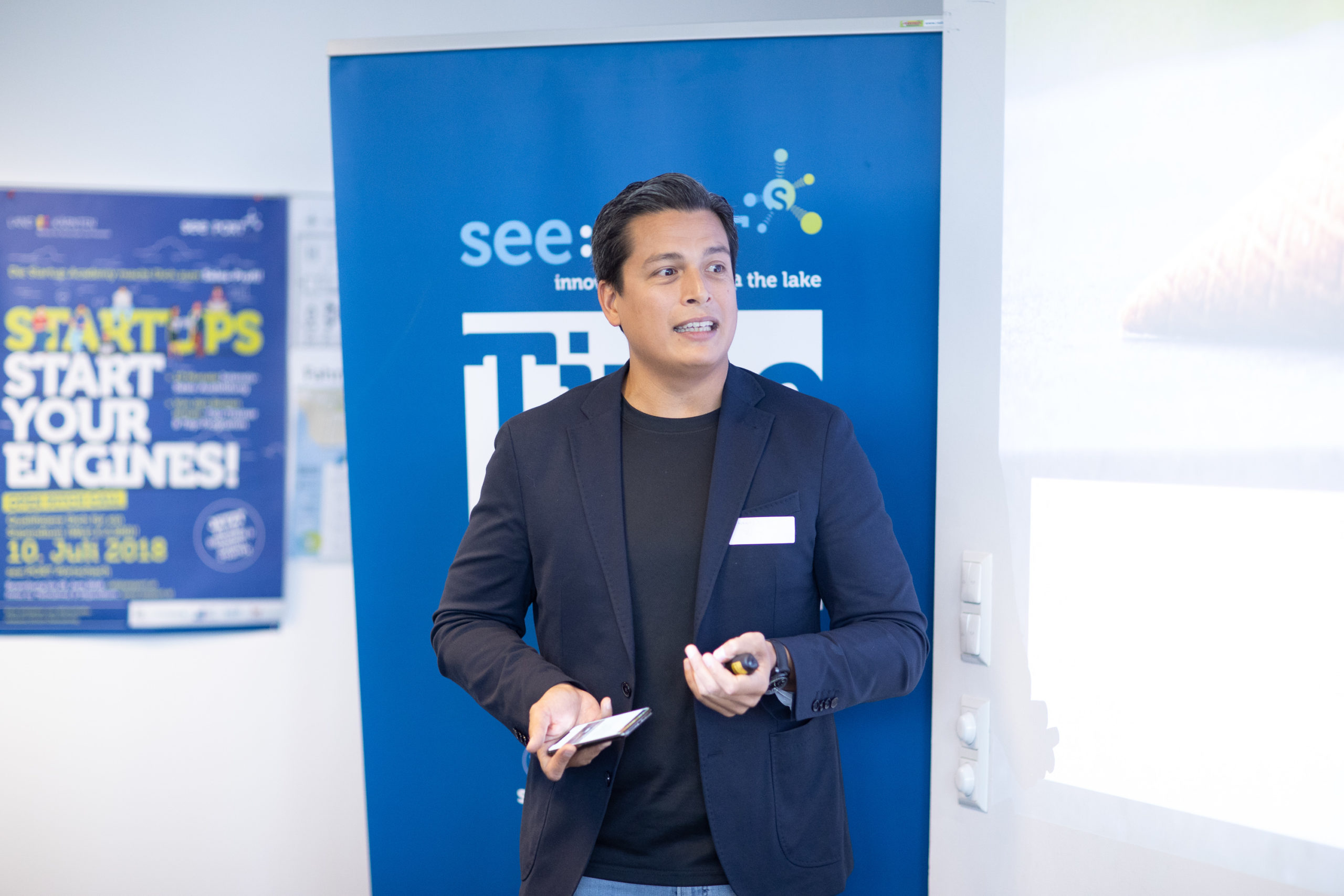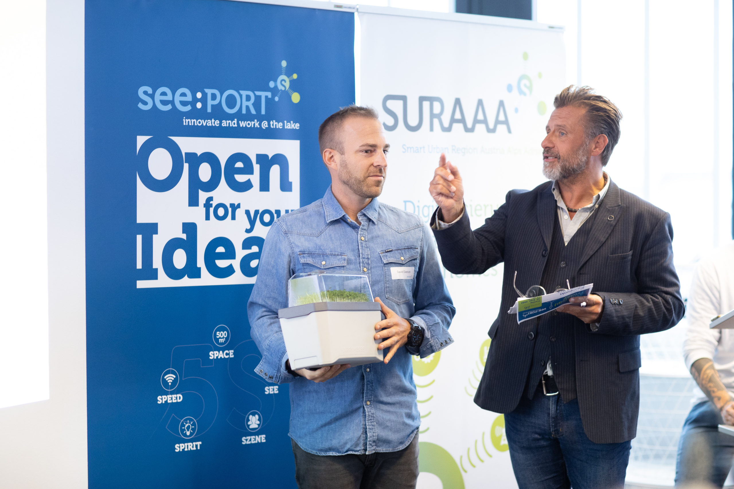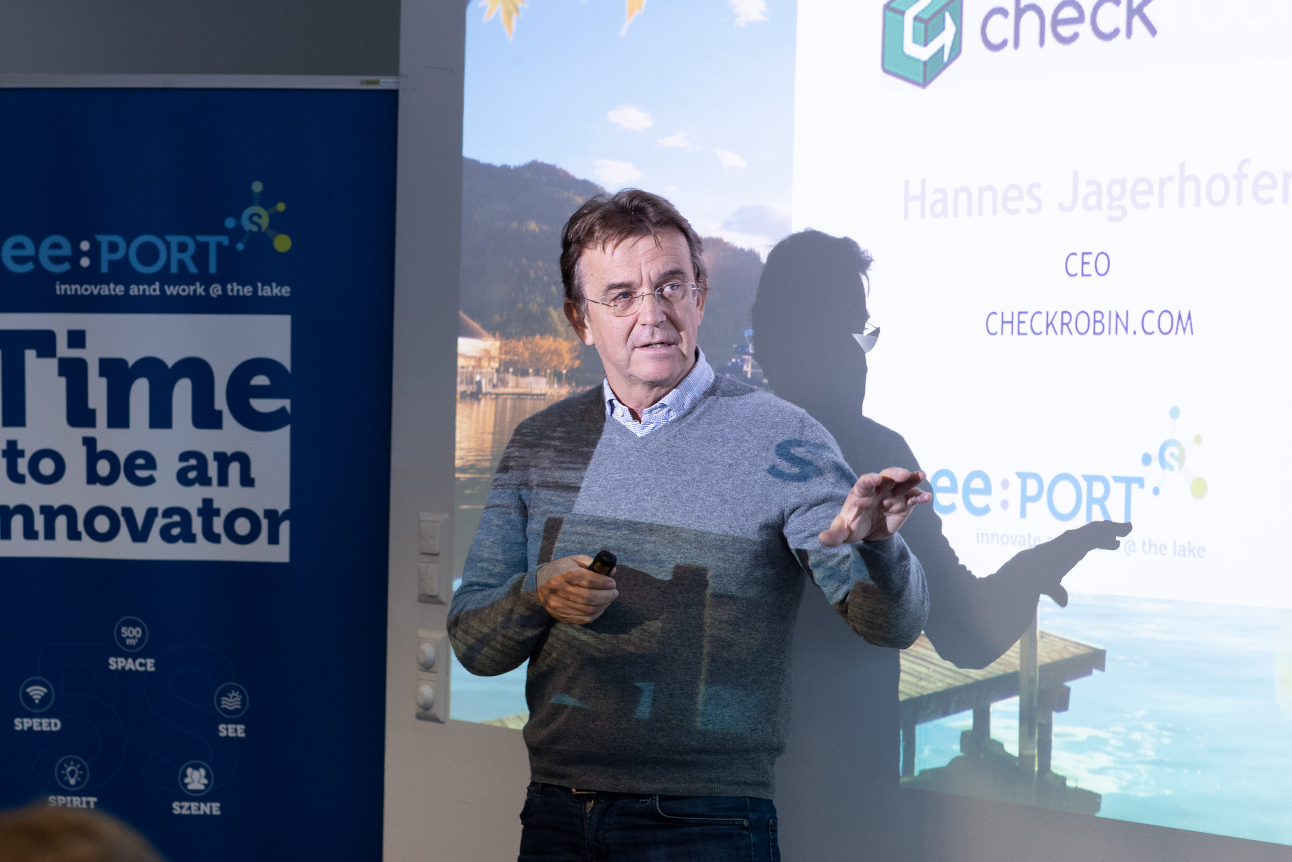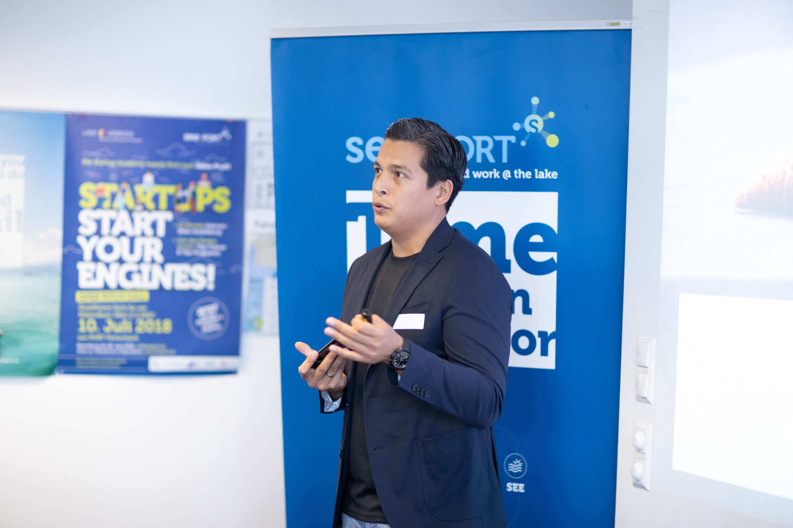 Stylisch wurde es dann zum Auftakt der „Pitching Time“: Michel Steiskal und Maximilian Longinus, CEOs vom Startup CHOYCE hoben die Unterschiede Ihrer neu gelaunchten „Kleiderschrank-App“ hervor und zeigten den rund 80 Gästen im see:PORT, wie man mit nur drei Klicks stets das individuelle und richtige Styling im Kleiderschrank findet. „Mister Beachvolleyball“ Hannes Jagerhofer, u.a. auch CEO von CHECKROBIN.COM, startet – nach dem Erfolg in Deutschland – mit seiner Versandplattform „checkrobin.com“ gerade in Österreich durch und bietet durch die Zusammenarbeit mit verschiedensten Versand-Dienstleistern ein transparentes und flexibles System zum Versand von Paketen aller Art. Startup-„Urgestein“ David Dietrich von GUSTA GARDEN erzählte vom Launch seines letzten Online-Produktes „Harry Herbs“ und gab Tipps für den Einstieg ins Online-Business im Rahmen einer Kickstarter-Kampagne.