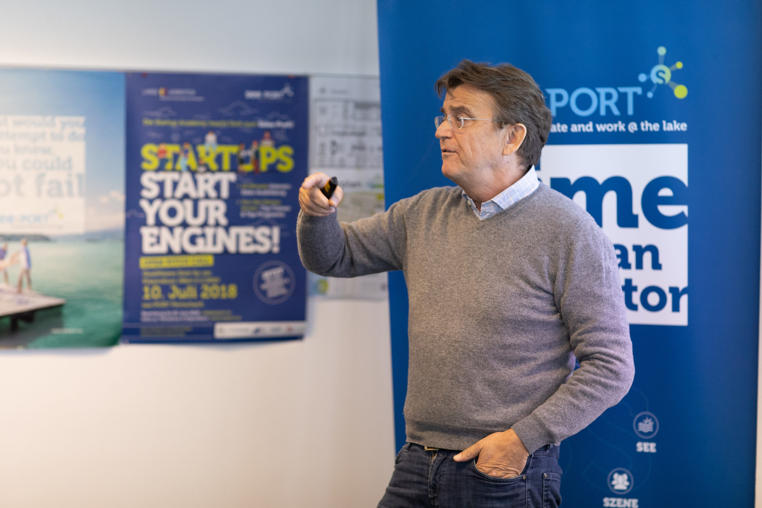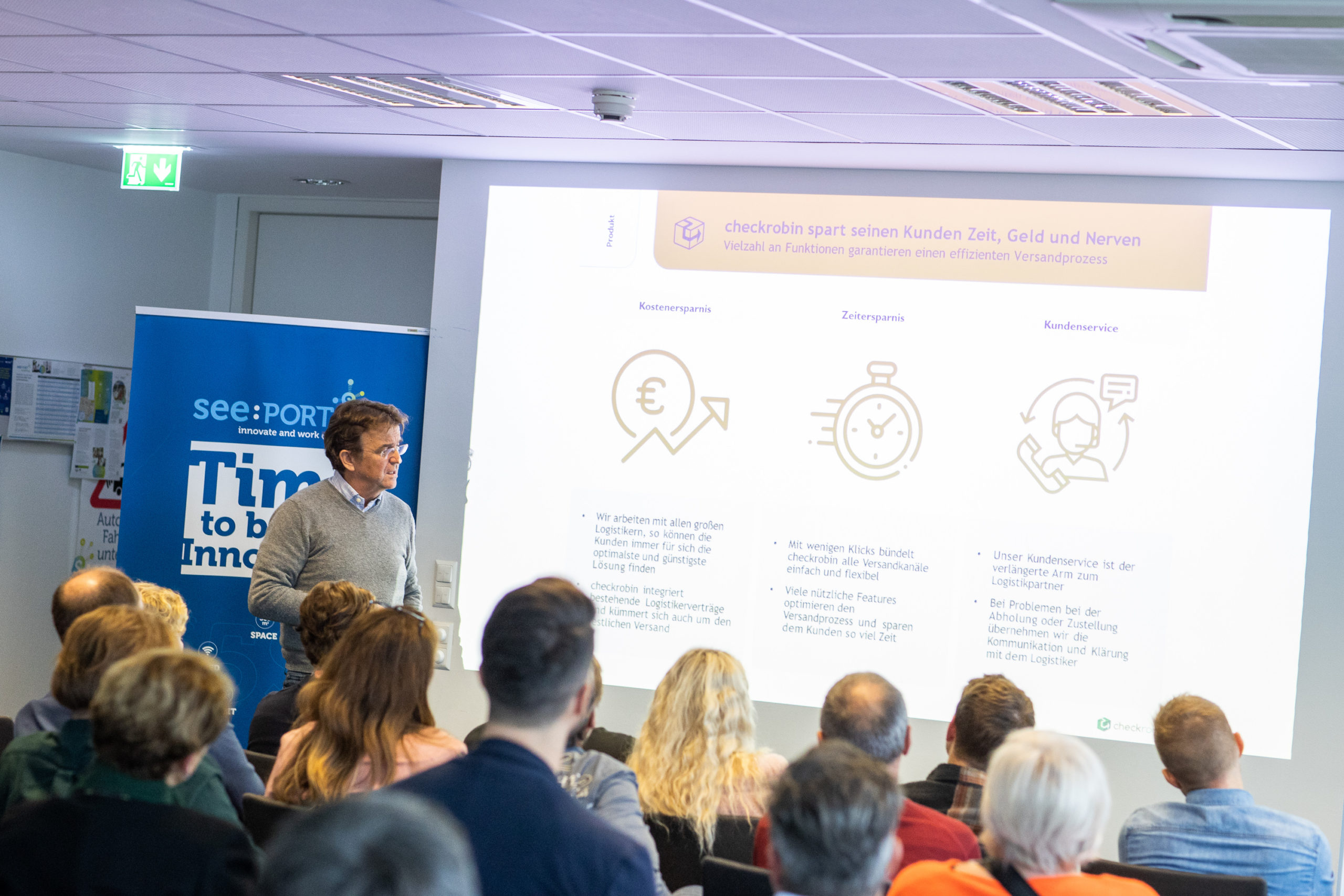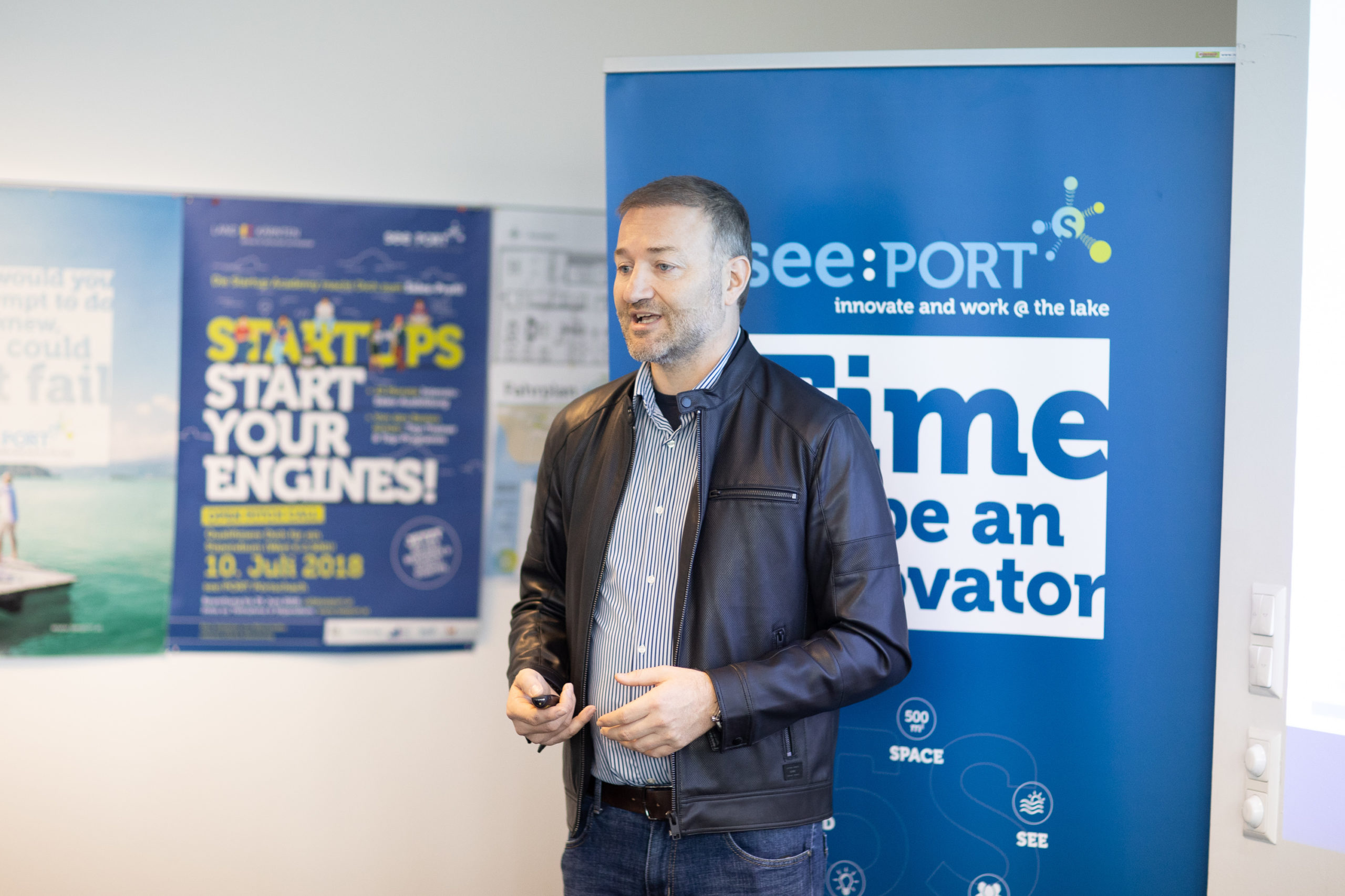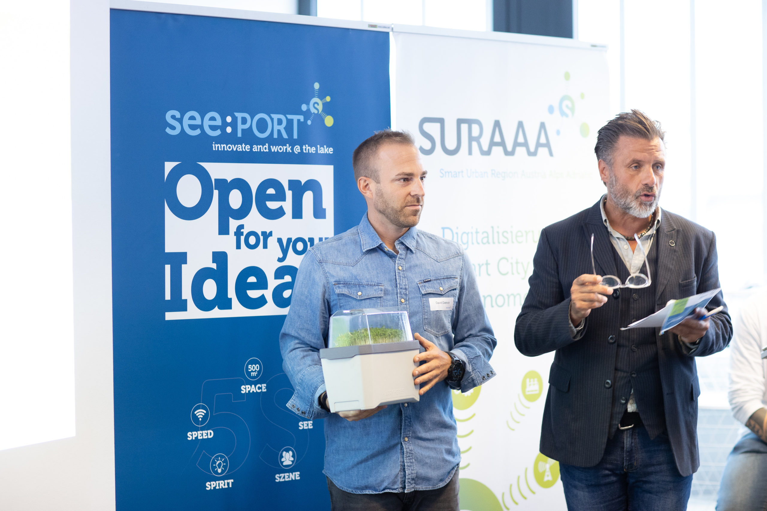 Stylisch wurde es dann zum Auftakt der „Pitching Time“: Michel Steiskal und Maximilian Longinus, CEOs vom Startup CHOYCE hoben die Unterschiede Ihrer neu gelaunchten „Kleiderschrank-App“ hervor und zeigten den rund 80 Gästen im see:PORT, wie man mit nur drei Klicks stets das individuelle und richtige Styling im Kleiderschrank findet. „Mister Beachvolleyball“ Hannes Jagerhofer, u.a. auch CEO von CHECKROBIN.COM, startet – nach dem Erfolg in Deutschland – mit seiner Versandplattform „checkrobin.com“ gerade in Österreich durch und bietet durch die Zusammenarbeit mit verschiedensten Versand-Dienstleistern ein transparentes und flexibles System zum Versand von Paketen aller Art. Startup-„Urgestein“ David Dietrich von GUSTA GARDEN erzählte vom Launch seines letzten Online-Produktes „Harry Herbs“ und gab Tipps für den Einstieg ins Online-Business im Rahmen einer Kickstarter-Kampagne.