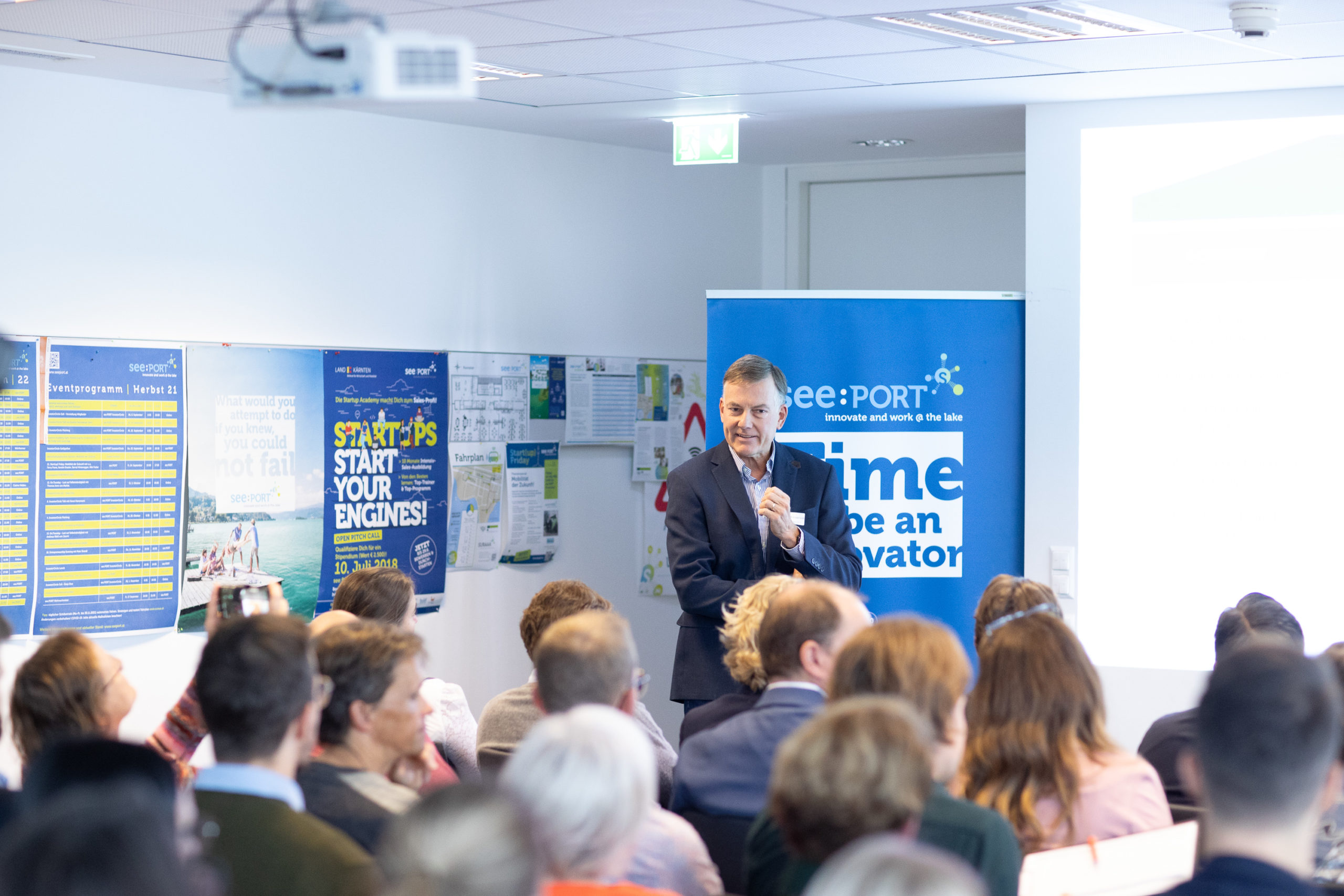 Wie vielfältig die digitalen Handelswege sind, wurde beim 26. Start(up) Friday am Freitag, den 30. September im see:PORT in Pörtschach sehr eindrucksvoll präsentiert. In seinem Opening blickte Kärntens Wirtschaftslandesrat Sebastian Schuschnig aber vorerst nochmals zurück. Und zwar auf den März 2020, als durch den plötzlichen Lockdown der komplette Handel vor der Frage stand, wie es weitergeht. „Uns wurde schnell klar, dass die Lösung nur in einem groß angelegten Online-Shoppingportal liegen kann, in dem alle lokalen und regionalen Anbieter gelistet sind.“ erzählte der Wirtschaftsreferent von diesen herausfordernden Momenten.