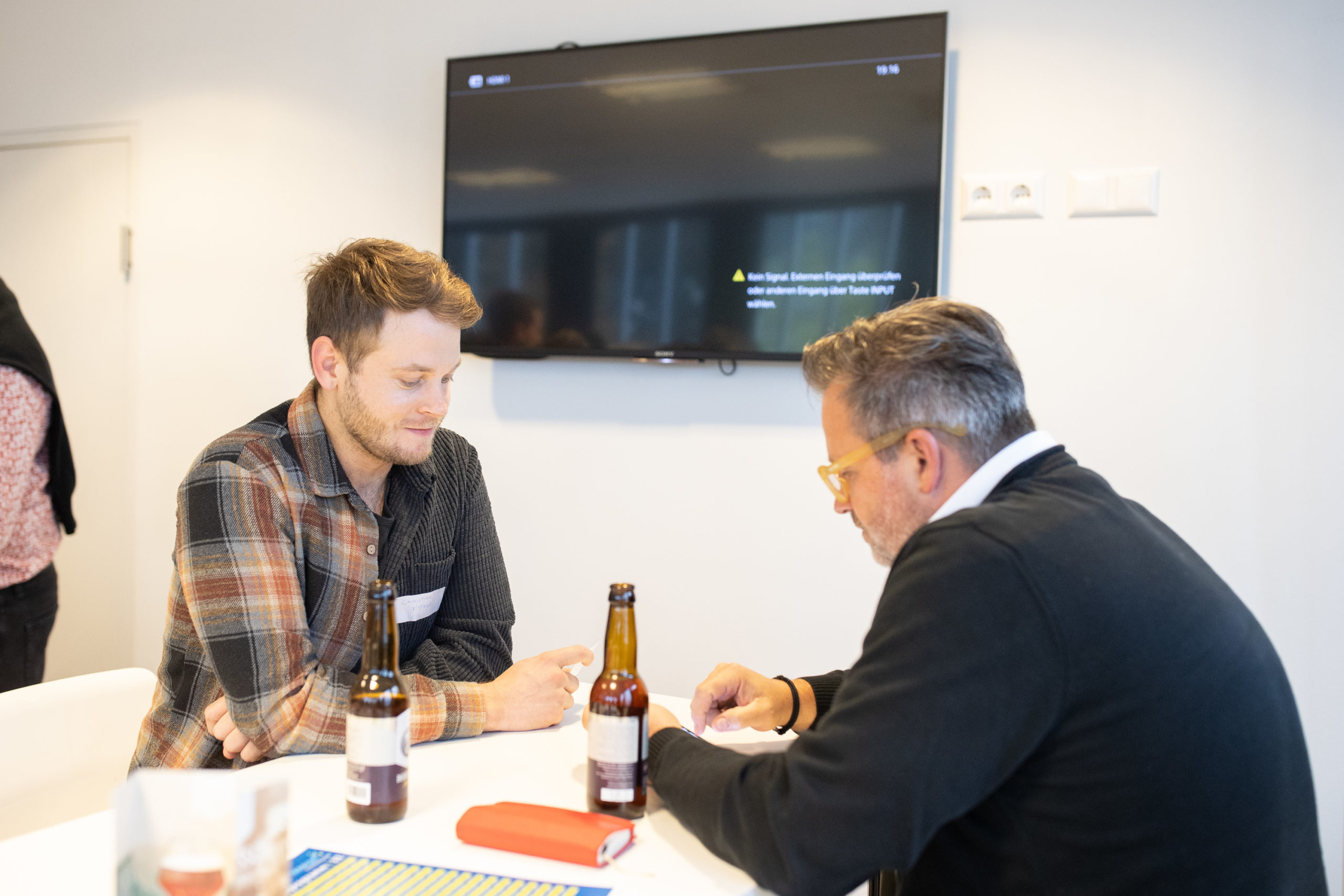 Beim anschließenden Netzwerken in der see:PORT-Cafeteria wurde bei der Bierinnovation