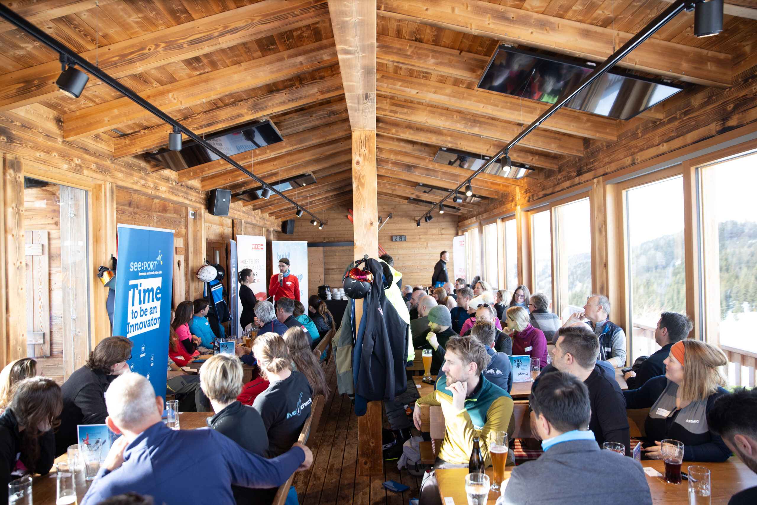 Nach einem beeindruckenden Erfolg im Vorjahr versammelten sich am 26. Januar 2024 – bei vollem Haus – Unternehmer:innen, Innovator:innen, Investor:innen und Startups wieder im Skigebiet Goldeck zum „SKI ME UP“. Organisiert vom Team des see:PORT präsentierte sich die Veranstaltung auch dieses Jahr als ein einzigartiuges Highlight und Jahresauftakt der Kärntner Startup- und Gründungsszene. Inspirierende Pow(d)erimpulse und ein mitreißendes Kamingespräch erfüllten die Teilnehmer:innen mit Motivation und ließen neue Kontakte, Kooperationen und Projekte entstehen.