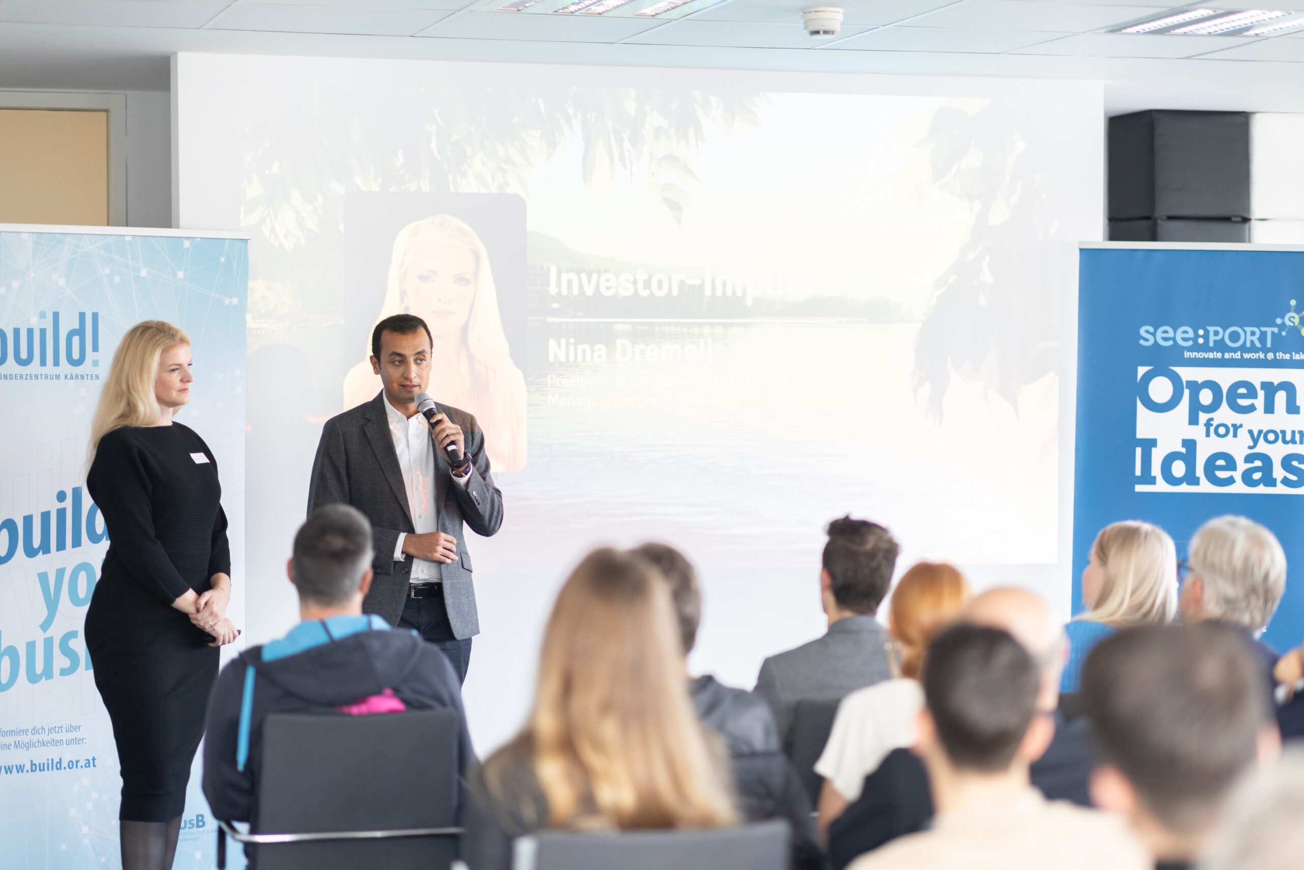 Sandra Moschitz, Startup Coach und Local Representative von Austrian Startups, eröffnete die Veranstaltung im Namen des build! Gründerzentrums und betonte: „Es ist nicht ‚lei‘ Kärnten“, um auf die zahlreichen innovativen Projekte in Kärnten hinzuweisen. Sie appellierte an das Publikum, das „Gefühl von einem innovativen Kärnten“ zu bewahren. Kambis Kohansal Vajargah, Leiter des WKÖ-Startup-Services, sprach über die wichtige Rolle von Startups, Investor und Behörden. Er thematisierte die oft als schwierig wahrgenommene Zusammenarbeit zwischen diesen Akteur und stellte die „Lean Startup Methode“ als essenzielles Werkzeug für die Produktentwicklung vor. Nina Dremelj, Präsidentin der Business Angels of Slovenia, Managing Partnerin des Vesna deep tech Funds und Gründungsmitglied des see:PORT InvestorCircles, gab wertvolle Tipps für Investments und Einblicke in das slowenische Startup-Ökosystem. Christian Kollegger, COO von Streamdiver, teilte als Best-Practice-Beispiel die Erfolgsgeschichte seines Unternehmens. Mit dem Satz „Wenn das Unternehmen wüsste, was das Unternehmen weiß, wäre es eindeutig weiter“, verdeutlichte er die Bedeutung der effizienten Nutzung von Unternehmensdaten.