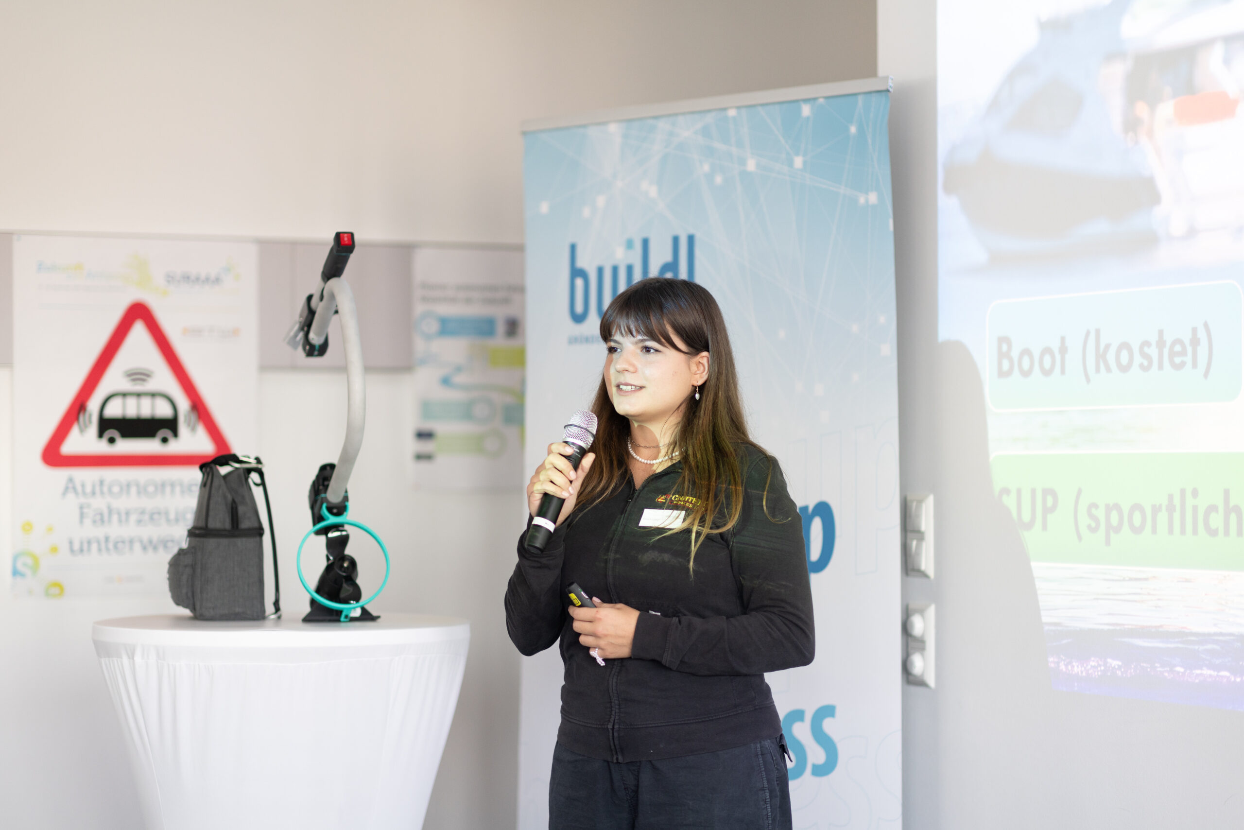 Die drei Startup-Pitches präsentierten innovative Lösungen in den Bereichen Energie, Mobilität und Gamification. Klement Kralj von Remea stellte eine Plattform vor, die Unternehmen bei der Vernetzung und Verwaltung ihrer E-Ladestationen unterstützt. Daniel Schöffmann von inmojo zeigte eine App, die durch Gamification Menschen und Organisationen für ehrenamtliche Tätigkeiten zusammenbringt. Klaus Ruetz und Miriam Udier präsentierten ihre Weltneuheit SUPglider, ein lenkbares, motorisiertes Stand-Up-Paddle, das volle Mobilität auf dem Wasser ohne Gleichgewichtstraining ermöglicht.