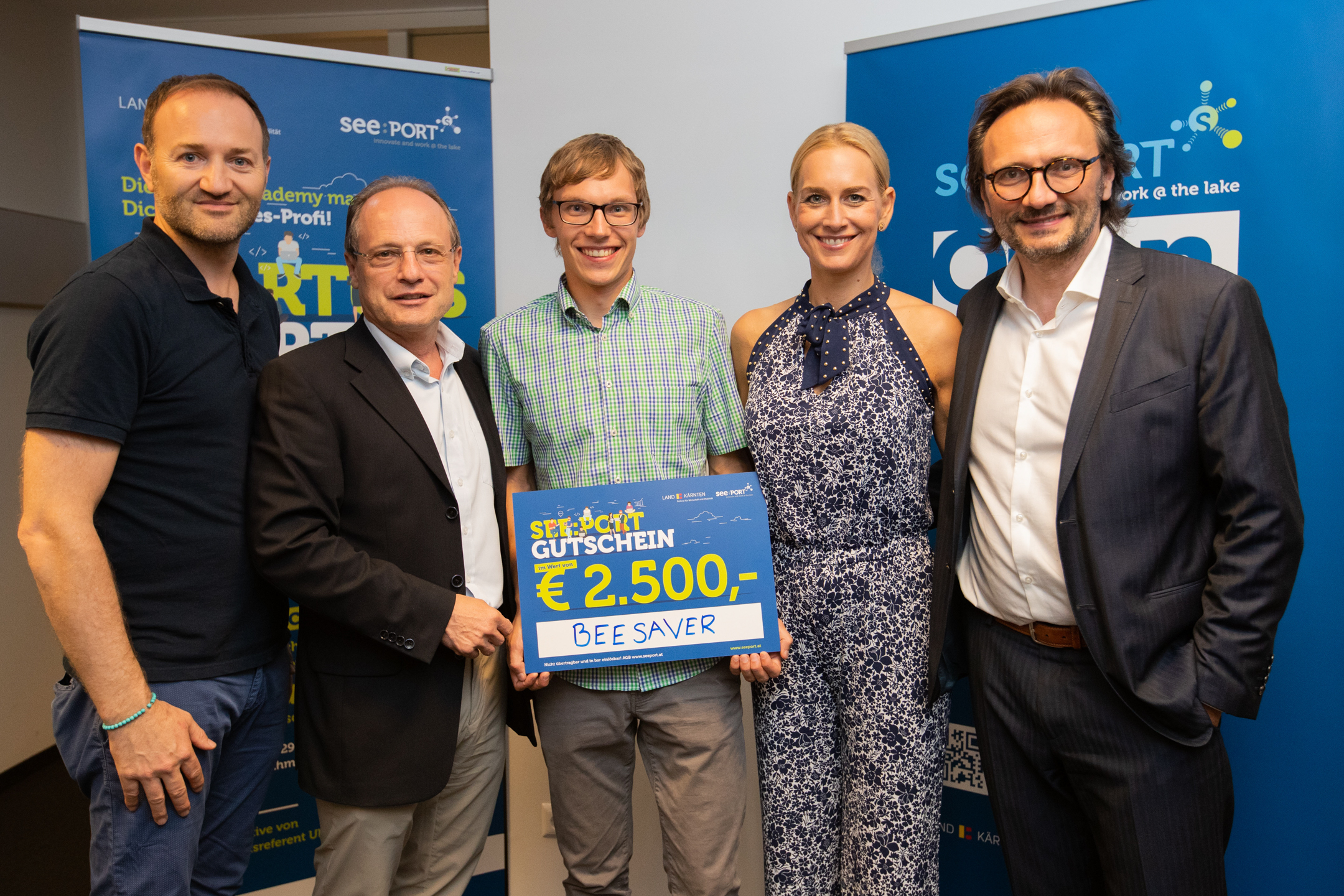 Fotocredit (see:PORT/KK), Foto 1 (v.l.n.r): Walter Prutej, Dr. Albert Kreiner, Tadej Certov (Beesaver), Katja Porsch und Peter Brandl